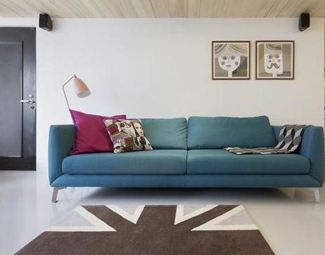 極簡單的墻面處理,只選取兩幅卡通人物肖像作為裝飾,不附加任何贅余的極簡主義,讓整個空間看起來雅致又簡約,再搭配上青藍色沙發, 白與藍色的經典色彩搭配,為空間增添了幾分潔凈和清爽,藍的深邃和白色的純凈巧妙地被搭配在一起,自然又充滿風韻。在漫延大片藍白之間,充當配色的是絳紫和咖色,幾種顏色,通過面積的搭配使用,絕妙的將青藍藍的深沉樸素,絳紫的高雅神秘,深咖的溫潤中庸, 純白 的細致精巧完美的詮釋。