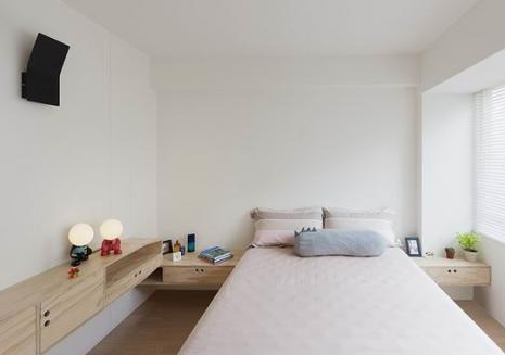 簡單的白色,純凈的米白色,自然的松木色,整個空間色調的組合簡約自然,中間色的使用也讓人感受到清新自然的森林之風,沒有多余裝飾的臥室設計,更為實用的家居組合,都能夠讓人享受到簡約給人帶來的爽快和通透。