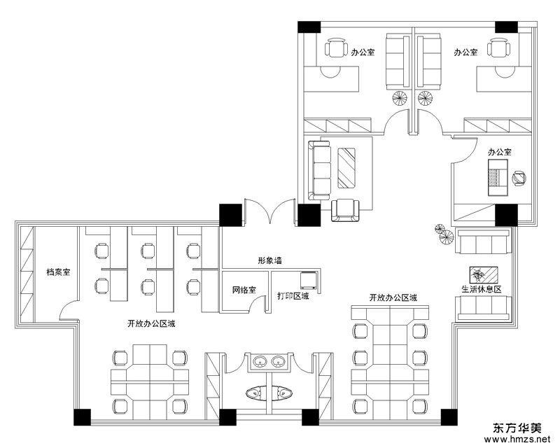 ▄原建筑結(jié)構(gòu)分析: 追求簡約明亮,現(xiàn)代氣息豐富。布局富有條理行,整體凸顯現(xiàn)代辦公室的整體感覺。甲方的空間功能需求包括前臺接待區(qū)、公共辦公區(qū)、會議室、總經(jīng)理辦公室、走廊、茶水間、綜合辦公室、財務(wù)室、雜物間、洽談室等。
