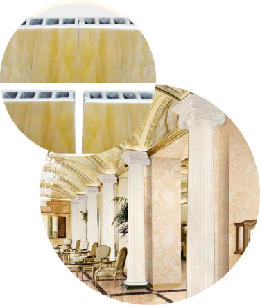 東方華美藝術(shù)隔斷能夠充分滿足大面積鋪裝,以及對材料色差要求高的需求。
